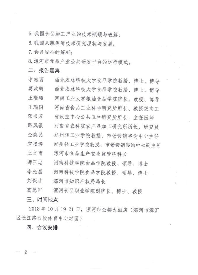 关于举办中国(漯河)食品产业提质创新发展研讨会的通知