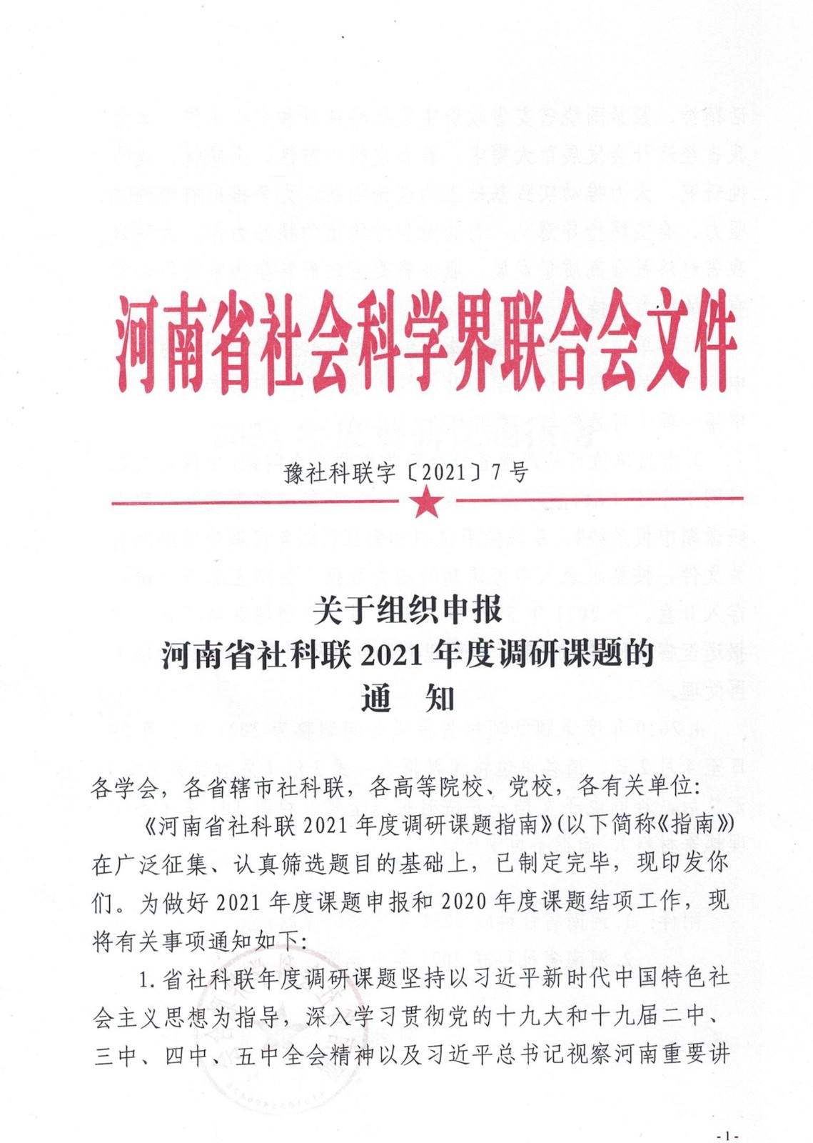 关于组织申报河南省社科联2021年度调研课题的通知