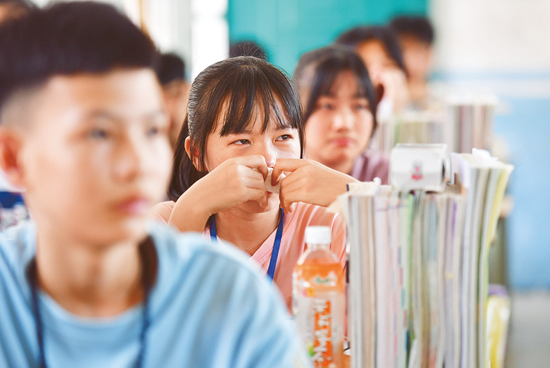 2019年9月,西北工业大学派出支教团到广西融水苗族自治县部分中学支教。近一年来,支教团成员积极创新教学方法,强化教学技能,深受老师认可和同学喜爱。2020年7月23日,融水苗族自治县保桓中学1813班为支教老师举办送别班会,一名同学流下不舍的泪水。 新华社记者 黄孝邦/摄