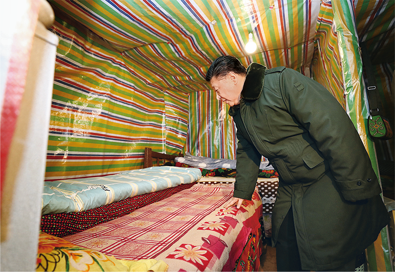 中华民族传统节日农历春节来临之际,中共中央总书记、国家主席、中央军委主席习近平来到四川考察调研,看望慰问各族干部群众,向全国各族人民致以美好的新春祝福。这是2018年2月11日上午,习近平在凉山彝族自治州昭觉县三岔河乡三河村贫困户吉好也求家中看望。 新华社记者 鞠鹏/摄