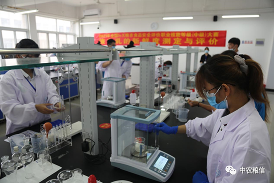 经过食品检测系全体教师紧张而有序的准备,2021年6月25日,由中国信息协会指导,农业农村部农产品质量监督检验测试中心(北京)、中国信息协会粮农信息分会、1+X粮农食品安全评价职业教育培训评价组织联合主办,漯河食品职业学院与中农粮信(北京)技术服务有限公司共同承办的2021年全国首届1+X粮农食品安全评价职业技能等级(中级)大赛在漯河食品职业学院食品检测系成功举办。