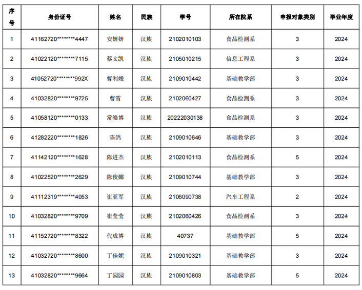 漯河食品职业学院关于《河南省高校毕业生求职创业补贴申请》公示
