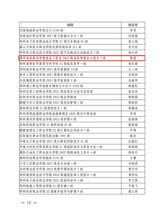 近日,中共河南省委教育工委河南省教育厅下发《关于公布2023 年度全省教育系统“两创两争”活动先进集体和先进个人评选结果的通知》(豫教工委〔2023〕112 号),经过申报评选推荐,组织资格审查,专家集中评审,网上公示等环节,学院食品工程系 2021 级食品智能加工技术 1 班荣获2023 年度全省教育系统“两创两争”......