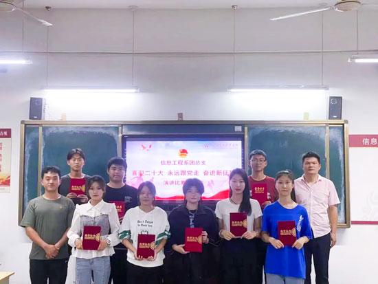 为深入贯彻落实国家资助政策,切实做好国家奖助学金的评审、发放工作,帮助家庭经济困难学子顺利完成学业,williamhill英国官网根据河南省学生资助管理中心下发的《关于做好2022年高校学生国家奖助学金评审发放工作的通知要求》(豫教资〔2022〕22号)文件精神,认真组织开展了2022年度国家奖助学金评定工作。 依据《漯河...... 阅读(2140)2022/09/22信息工程系“喜迎二十大,永远跟党走,奋斗新征程”演讲比赛完美落幕