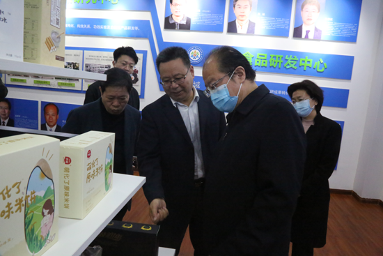 学院党委副书记、创办人詹跃勇,向王丁一行简要介绍了漯河食品职业学院的办学理念、办学特色、科研成果转化及近年来学院的主要办学成果。王丁对学院的办学特色、办学定位给予充分肯定,并对学院科研成果转化很好的服务地方经济发展表示赞赏,他勉励学院领导要利用好食品研发平台,不断实现研究成果从论文价值到经济价值的转换。