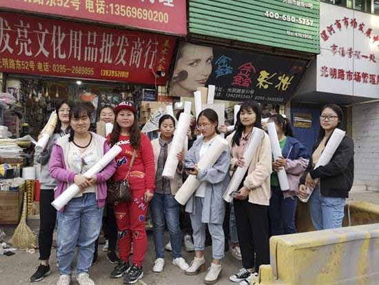 本报讯2019年4月15日星期一下午13时30分,17级艺术一班在张江博张老师的指导和带领下学习古籍线装书的制作和对古籍线装书材料的购买。