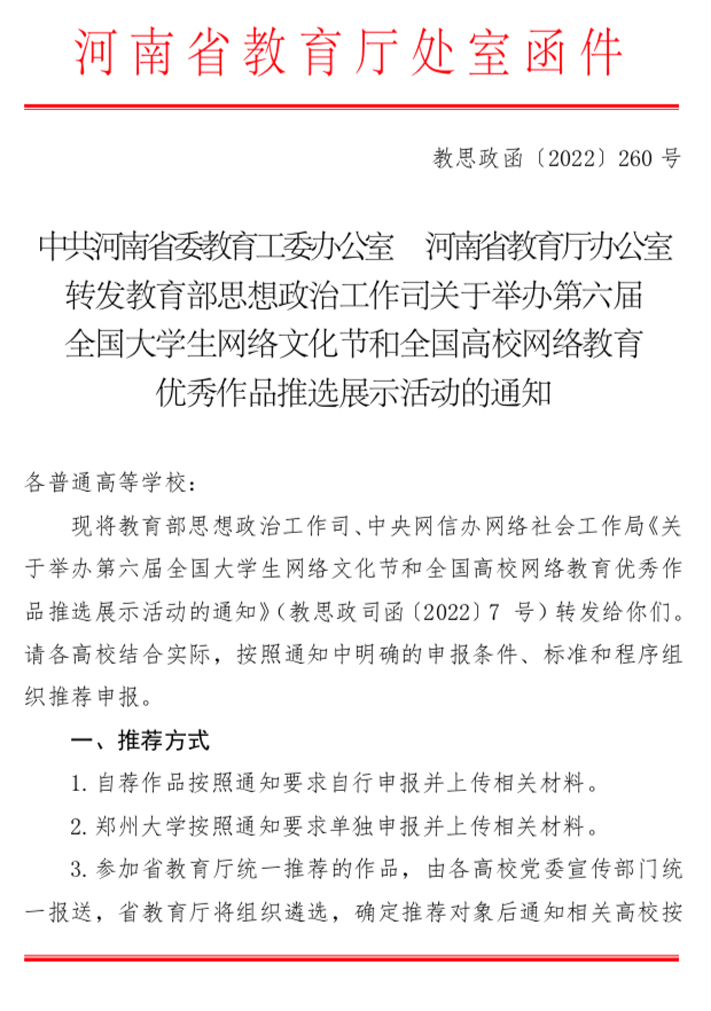 2022年5月25日中午12点,我系在E201举办“喜迎二十大 开卷品书香 阅读共成长 世界读书日读好书颁奖典礼”。漯河食品职业学院图书馆馆长刘奇付副教授,信息工程系团总支书记李国柱,学生会主席郭卓奇,学生会全体成员和团学干部共同参加此次会议。本次颁奖典礼由系团总支书记李国柱主持召开。 会议伊...... 阅读(1448)2022/05/20全国大学生网络文化节和全国高校网络教育 优秀作品推选展示活动的通知
