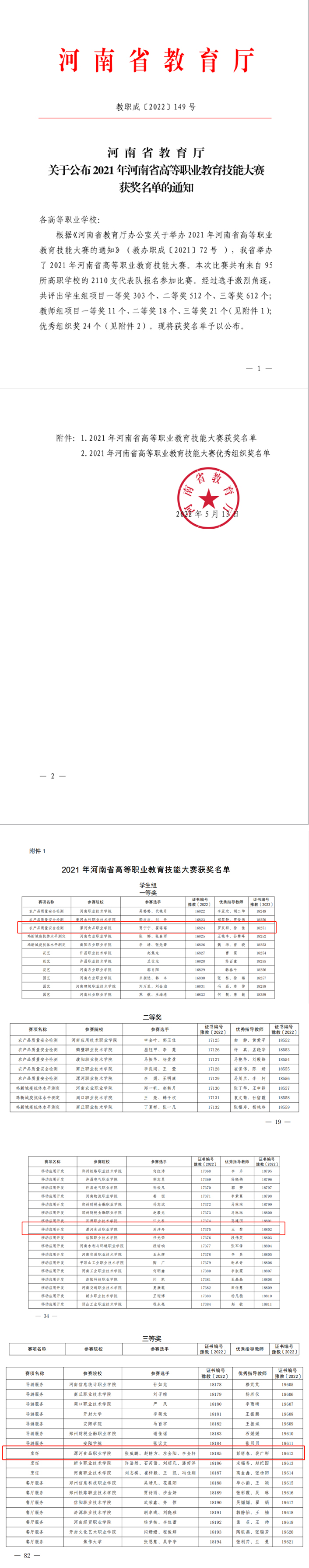 2022/05/20漯河食品职业学院 在2021年河南省高等职业教育技能大赛中取得优异成绩