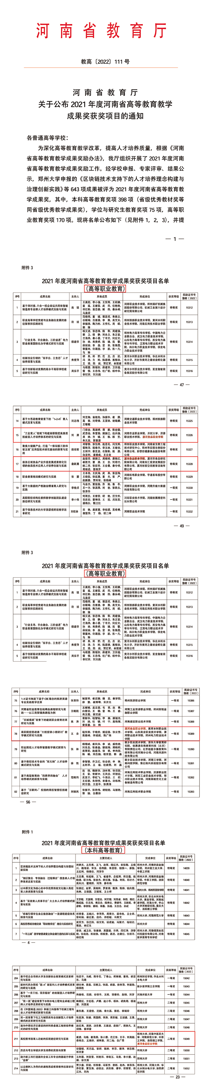 2022/04/19我院获得2021年度河南省高等教育教学成果特等奖