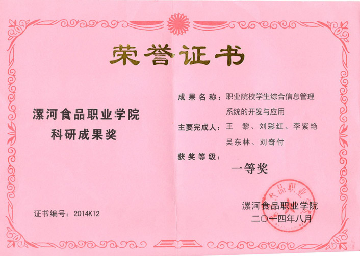 漯河食品职业学院2011-2012学年度科研成果一览表