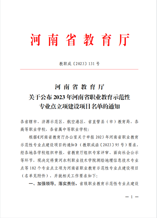 近日,河南省教育厅发布了《关于公布 2023 年河南省职...... 阅读(1302)