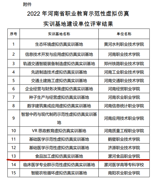 2023/06/07食品加工虚拟仿真实训基地获批河南省职业教育示范性虚拟仿真实训基地