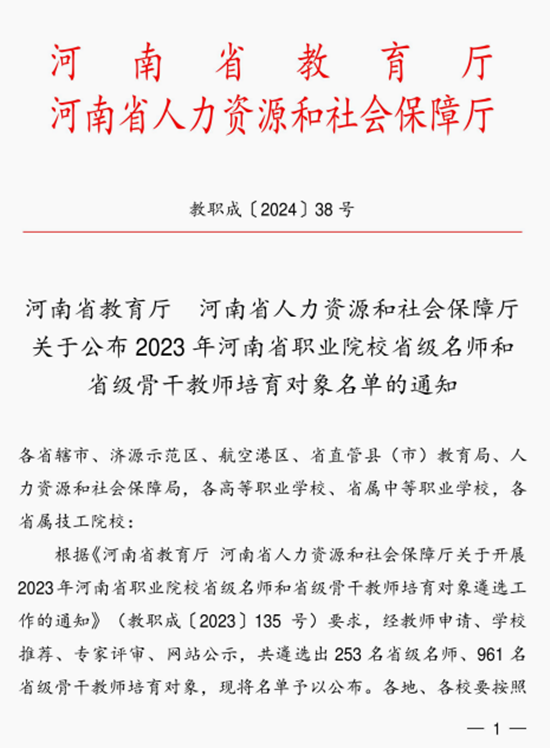 2024/01/28我系周婧琦教授成功入选2023年河南省职业院校省级名师
