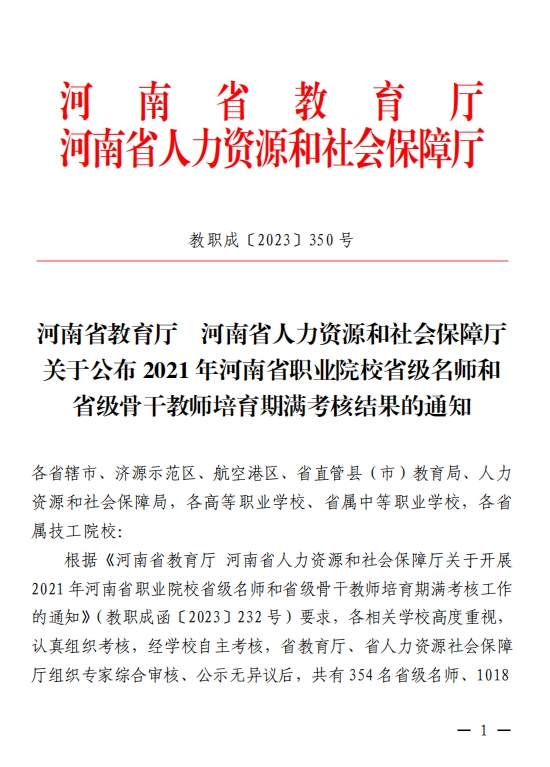 2023/10/31我系樊振江、赵俊芳等多名教师通过河南省骨干教师和职业院校名师考核