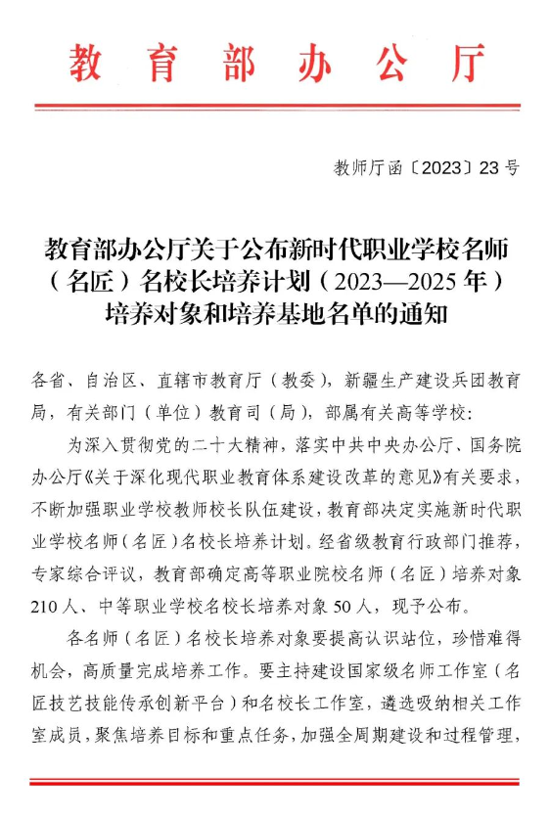 2023/10/10我系赵俊芳教授入选教育部新时代职业学校名师(名匠)培养计划