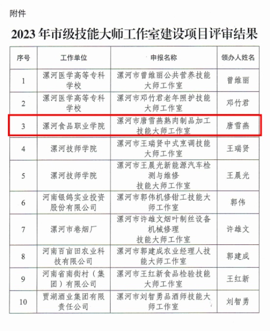 2023/10/27唐雪燕熟肉制品加工技能大师工作室:为能工巧匠插上腾飞的翅膀