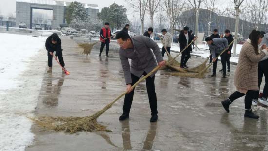 在食品检测系主任,党支部侯书记和食品检测系学生会干部,系部班级学生们的通力合作下,冒着风雪顶着严寒,共同完成了扫雪工作,确保了校园大门口周围没有积雪结冰,保障了师生出行方便,保证了1月10日学校教学秩序的正常进行,也给广大师生在寒冷的冬日里感受到了春天般的温暖。