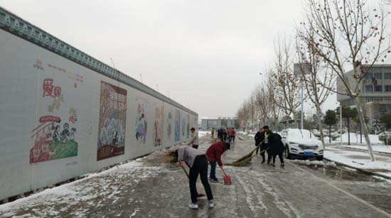 点点扫雪事,铲铲关爱情。我们不仅要让他们看到美丽的雪景,享受大雪带来的快乐,也要让他们能够安安全出行。扫雪活动中,大家挥动铁锹,舞动扫帚,个个精神抖擞、干劲十足,成为校园里一道靓丽的风景线。