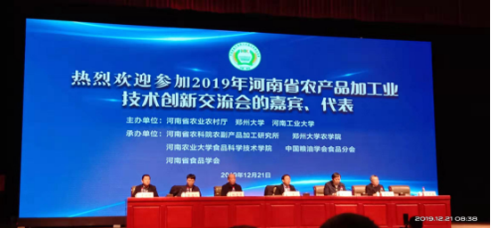 12月21日,由河南省农业农村厅、郑州大学、河南工业大学主办,河南省农科院农副产品加工研究所、郑州大学农学院、河南农业大学食品科学技术学院、中国粮油学会食品分会、河南省食品学会承办的2019年河南省农产品加工业技术创新交流会议在黄河迎宾馆顺利召开。河南省农业农村厅副厅长刘保仓、河南省农业农村厅党组成员、总农艺师王俊忠、国家“万人计划”科技创新领军人才、中国农业科学院农产品加工研究所副所长张德权等300余家单位、500余人参加会议。