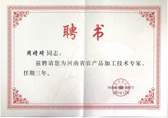 我系两名教师被河南省农业农村厅聘为 河南省农产加工技术专家