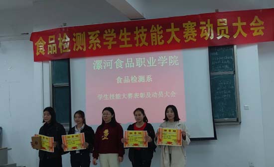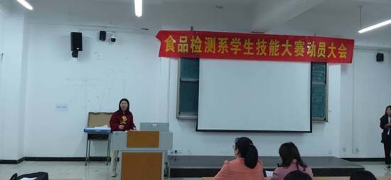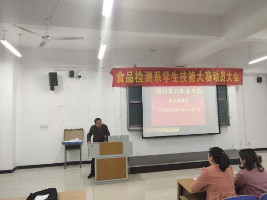 2019年4月28日晚,我系唐艳红主任,侯保清书记,张明玉主任,谢鹏老师,任亚敏老师,罗双群老师,以及我系辅导员带领17、18级学生共同召开了食品检测系学生技能大赛颁奖大赛暨动员大会。