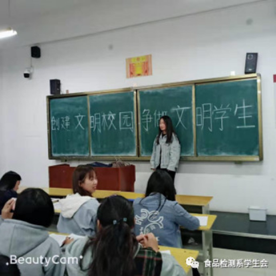 2019年11月13日,19级质检系各班同学们组织了(创建文明校园,争做文明学生)的主题班会活动,为了培养优良学风优化育人环境,从自己内心深处反省,增强文明意识,养成文明的良好习惯,通过本次活动,使学生充分认识到文明创建的重要性,文明建设就在我们身边,我们应当从身边小事做起,用精神来引领行动,从行动上到精神上做到一个文...... 阅读(970)