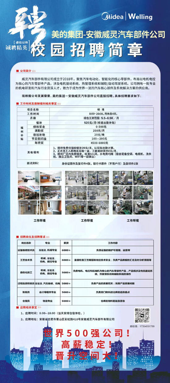 ... 阅读(1290)2023/12/18美的集团—安徽威灵汽车部件公司校园招聘