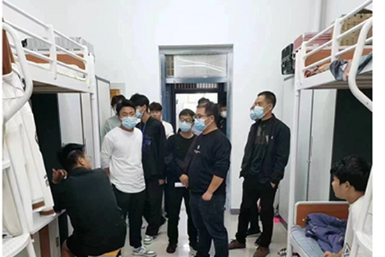 2022/10/17温暖人心-疫情期间系党支部书记曹学源,带领全体辅导员深入寝室开展工作