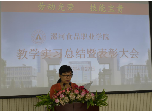 在大会上,教学实习带队老师代表岳艳霞、祝辉依次作了发言说,并在发言时说道“教学实习,是高等职业院校在改革创新的教育新模式,是高校培养合格人才的一个必要手段和必要途径之一。通过教学实习,学生将课堂中学到的专业知识运用到实践中,加深了对知识的理解程度,进一步了解企业和工作,有利于做好职业定位。”
