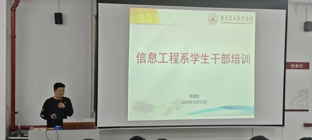 信息工程系为进一步提升学生干部工作素养,提升学生干部工作能力,于2023年10月31日在H107召开信息工程系学生干部培训会,会议由信息工程系团总支书记李国柱老师举行召开,全体学生干部参加本次培训。本次培训会李国柱老师主要从四个方面对学生干部进行了培训。需要大家明确学生干部的职责,他表示,学生干部首先是学生,其次是干部...... 阅读(1246)