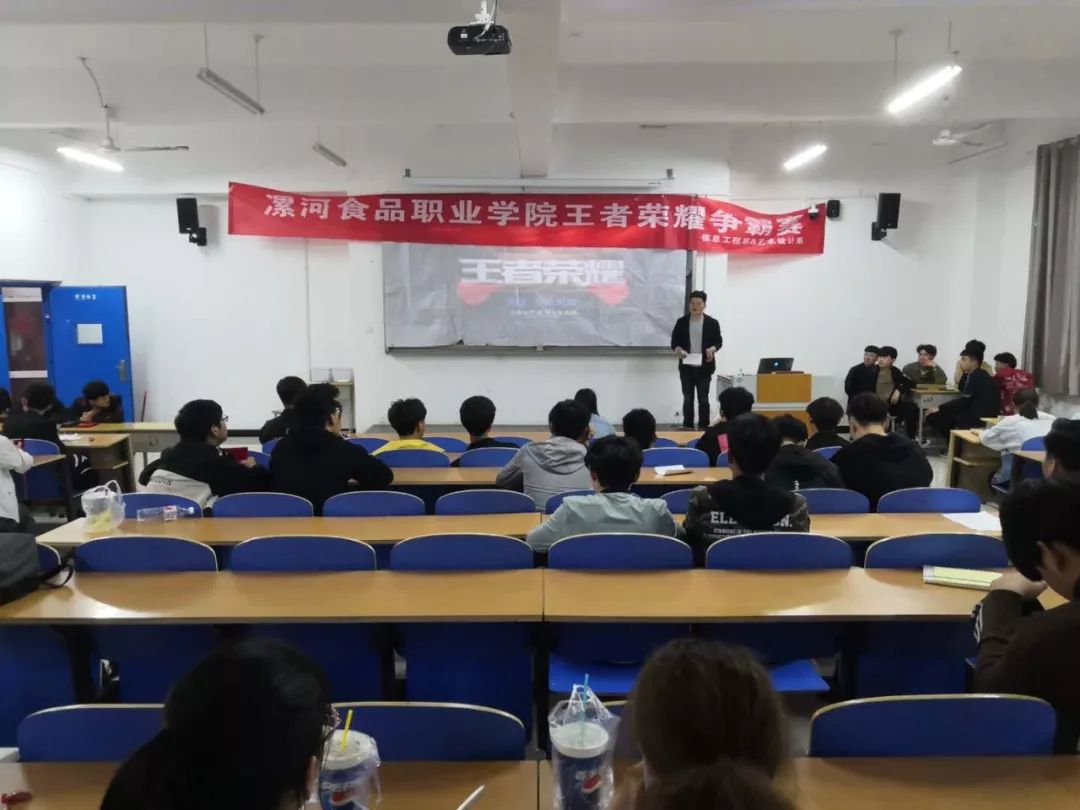 由信息工程系和艺术设计系学生会生活部策划主办的“漯河食品职业学院王者荣耀手游争霸赛”开幕式于4月18号下午14:30 在本科校区学术报告厅如期举行,此次参赛共有13个队,每队6-7人,将近100人参加此次比赛,学管干事李国柱老师致辞,预祝首届比赛圆满成功。