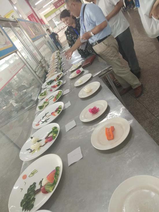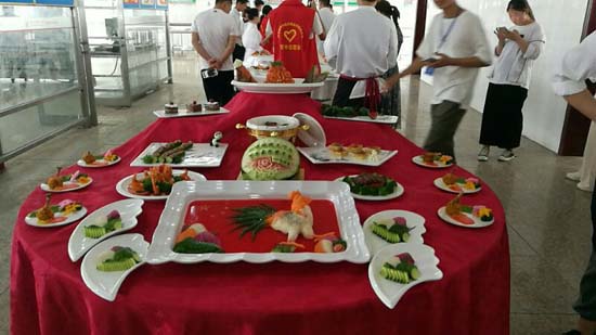 本次技能大赛为期两天,有个人赛和团体赛两个分项,个人赛是由营养烹饪系18级学生参与,分为热菜基本功菜肴掐菜爆鸡丝的制作、蓑衣黄瓜的制作、以及雕刻冷拼的制作,诣在考察18级学生的基本功训练情况。团体赛是营养烹饪系16、17级学生宴席制作比赛,诣在考察16、17级学生在宴席设计、烹饪技艺水平、作品研发方面的能力。
