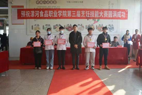 下午闭幕式在洋溢的颁奖曲中进行,胡红芹主任首先祝贺所有获奖的同学们,也鼓励本次比赛未获奖的同学在以后的学习中再接再厉,并对本次比赛进行了总结。随后学院院长刘强,执行院长洪世芳,胡红芹主任,张桂红主任,孟照江老师为获奖选手颁发了荣誉证书。校园因为有了文化,文明就有了更深厚的底蕴,学生因为有了技能,未来就会更加辉煌灿烂,愿我们大家齐心协力,学好专业技能,酒店烹饪产业学院未来更加美好!